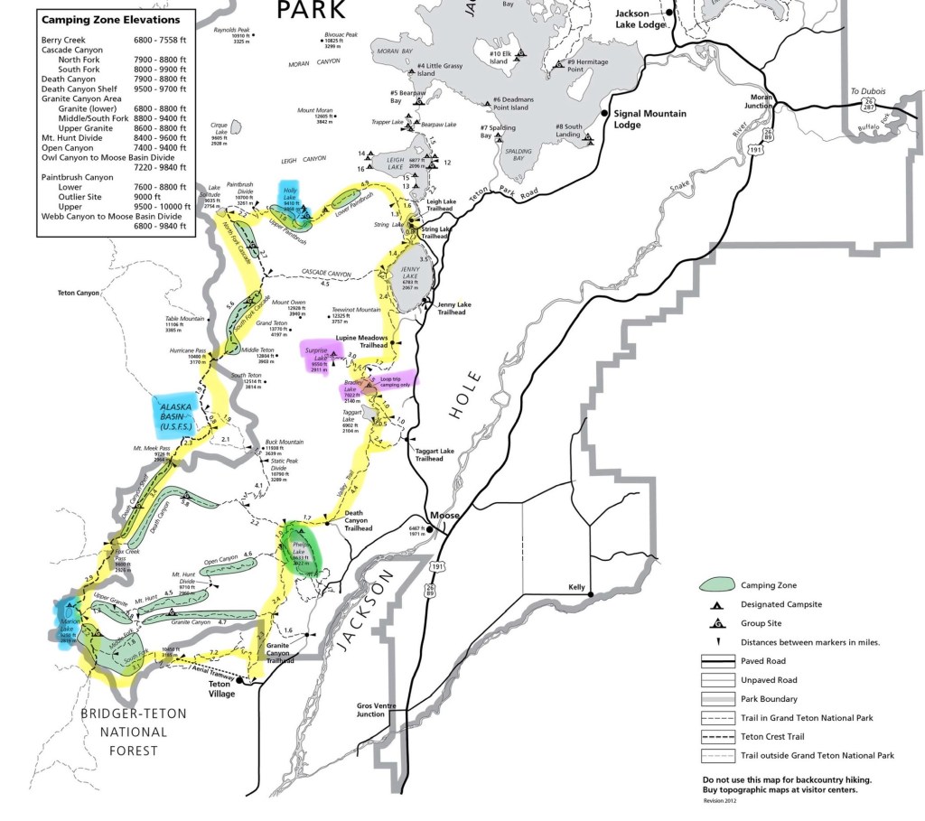 When starting your planning, I would highly recommend using the map that is on the NPS.gov website. I have included this same map below with my own additions.